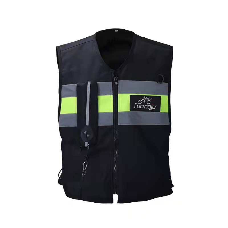 环裘气囊骑行服 环裘气囊马甲是针对国内摩托玩家而生,马甲材料为600D加厚密纹帆布,在保证美观的同时耐磨耐刮耐刺,在较轻的事故中可以很好的保证完善性,重复使用性。摩托车事故一般以擦伤,撞伤为主,在佩戴头盔,骑行服穿戴完整的情况下,可以避免大部分头部和四肢的擦撞伤,而胸部.肩部和背部是属于保护薄弱部位,而这件专用的气囊背心,可以做好很好的保护补充作用,在遇到险情时,骑手飞出摩托车到落地这期间内,气囊安全阀发生作用,0.08S内气囊会打开,在落地之前就可以对骑手起到最大程度上的保护。 气囊背心重量样式都和普通反光背心相仿,可以重复利用,结构由气囊背心主体,气罐,安全阀,在安全气囊作用一次之后,如果背心在没有破损的情况下,更换气罐即可再次使用,使用成本非常低廉。 本产品已通过了国家公安部认证且获得了国家3A级权威检测中心的质量合格检测