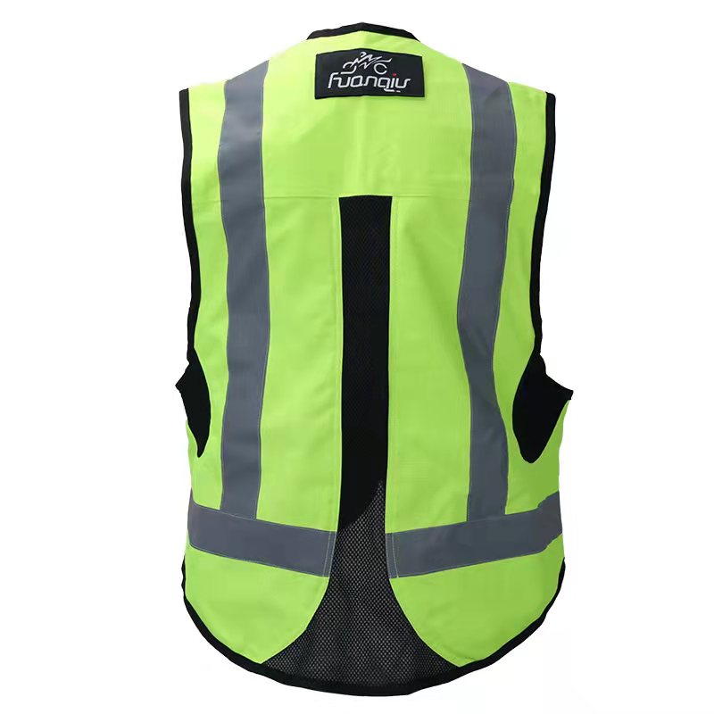 环裘气囊骑行服 环裘气囊马甲是针对国内摩托玩家而生,马甲材料为600D加厚密纹帆布,在保证美观的同时耐磨耐刮耐刺,在较轻的事故中可以很好的保证完善性,重复使用性。摩托车事故一般以擦伤,撞伤为主,在佩戴头盔,骑行服穿戴完整的情况下,可以避免大部分头部和四肢的擦撞伤,而胸部.肩部和背部是属于保护薄弱部位,而这件专用的气囊背心,可以做好很好的保护补充作用,在遇到险情时,骑手飞出摩托车到落地这期间内,气囊安全阀发生作用,0.08S内气囊会打开,在落地之前就可以对骑手起到最大程度上的保护。 气囊背心重量样式都和普通反光背心相仿,可以重复利用,结构由气囊背心主体,气罐,安全阀,在安全气囊作用一次之后,如果背心在没有破损的情况下,更换气罐即可再次使用,使用成本非常低廉。 本产品已通过了国家公安部认证且获得了国家3A级权威检测中心的质量合格检测