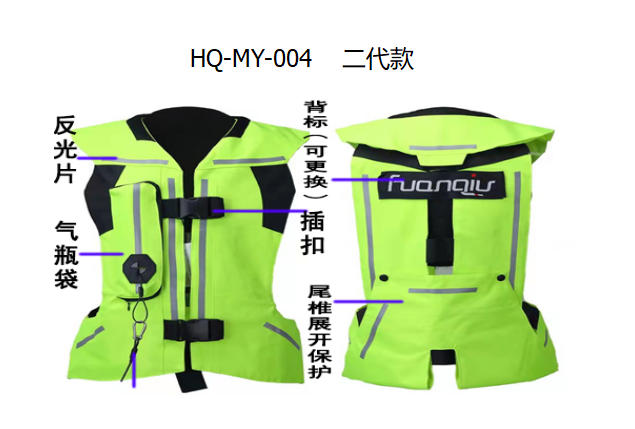 环裘气囊马甲是针对国内摩托玩家而生,马甲材料为600D加厚密纹帆布,在保证美观的同时耐磨耐刮耐刺,在较轻的事故中可以很好的保证完善性,重复使用性。摩托车事故一般以擦伤,撞伤为主,在佩戴头盔,骑行服穿戴完整的情况下,可以避免大部分头部和四肢的擦撞伤,而胸部.肩部和背部是属于保护薄弱部位,而这件专用的气囊背心,可以做好很好的保护补充作用,在遇到险情时,骑手飞出摩托车到落地这期间内,气囊安全阀发生作用,0.08S内气囊会打开,在落地之前就可以对骑手起到最大程度上的保护,而且可以多次使用。 气囊背心重量样式都和普通反光背心相,可以重复利用,结构由气囊背心主体,气罐,安全阀,在安全气囊作用一次之后,如果背心在没有破损的情况下,更换气罐即可再次使用,使用成本非常低廉。 本产品已通过了国家公安部认证且获得了国家3A级权威检测中心的质量合格检测。 |